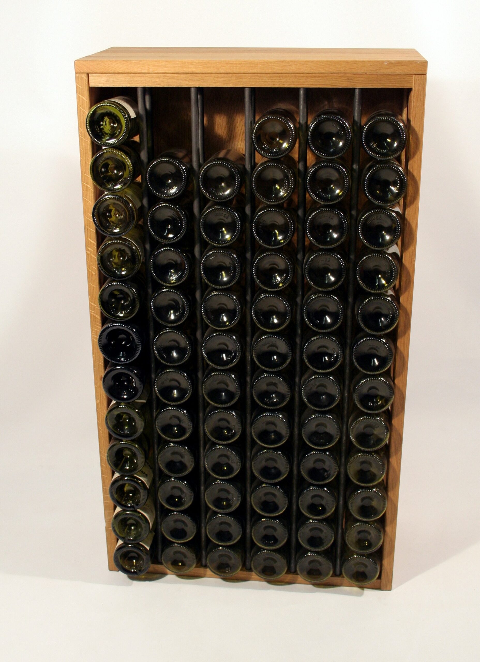 Attention : Ce casier accepte les bouteilles type champagne, chateauneuf du pape, ou toute bouteille dont le diamètre dépasse 83 mm sur le rang droit et gauche du casier , les bouteilles standards se rangent à tous les rayons.
